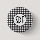 Personalised Monogrammed Black and White Buffalo Check Plaid Button