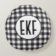 Personalised Monogrammed Black and White Buffalo Check Round Pillow