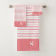 A great look for your bathroom. With a set of striped towels in a rose pink shade. Personalise with your own initial to get a monogrammed design that says class. This would make an ideal wedding gift or housewarming gift for friends and family. Simple, stylish, and practical.