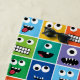 Personalised Monster Face Pattern Colourful Kids Beach Towel. Personalised with name. Silly one eyed and two eyed monsters with sharp teeth in a variety of colours. www.SamAnnDesigns.com