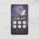 The front of this beautiful loyalty card design features a glowing starry night sky, the full moon and a beautiful soaring owl. The back features a similar scene but with a magical tree illuminated with glowing string lights and lanterns. Personalise the front with a custom offer and the back with a business name and contact details.