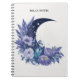 Personalised watercolor moon notebook with a mystical, celestial, and floral design in purple and blue colours with beautiful flowers.