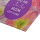 Bright coloured floral cutting board with text. Replace the name with your own by using the personalised template. This custom cutting board makes a great gift for Mother's Day or birthdays.