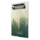 Personalised clipboard with a beautiful photo of peaceful mountains and forest blanketed in fog.