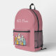 Lightweight and durable, our custom all-over-print Backpack is just what you need. The spacious interior is ideal for travel, school, gym, or any mobile storage need. Bring your stuff with you in style! Features Adjustable padded shoulder straps, two chambers on the inside for laptop storage, mesh side pockets and an identification label.