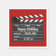 Fun paper party napkins feature retro style movie clapboard with customisable text on red background (change to any colour you prefer). Personalise for birthdays, movie awards nights and more. Coordinates with other products from our Movie Theme Gift Wrap and Party Supplies Collection