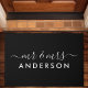 Personalised Mr. And Mrs. Black Newlywed Couples Doormat. This design features calligraphy script Mr & Mrs typography. Personalise this custom design with your own name. Makes a great wedding gift for newlyweds or housewarming gift for a lovely couple.