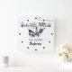 This black and white Mr. & Mrs. clock features two chickens, a rooster and hen in love. They are set against a charming line drawing country farm. It can be personalised with a surname or any text that you wish to add. ~