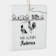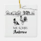 This Mr. & Mrs. First Christmas ornament features two chickens in love. This rooster and hen are eating and strutting about in front of a charming line drawing country farm. It can be personalised with a surname, year or any text that you wish to add. Thanks for stopping by!