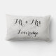 Personalised white and grey marble Mr. and Mrs. lumbar pillow. This stylish pillow features elegant black writing. You can personalise it with your surname, and even change the text colour and font style using the customise option. Perfect for a wedding, engagement or anniversary gift!