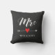 Mrs in calligraphy style white script font with a red heart and white arrow embellishments. Personalise with your name in white serif font.