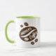 Personalised mug gift with coffee beans design. Personalise this coffee cup with your own text. Custom colour design with cool typography. Make your own coffee mug for friends, family, coworker, coffee lover, barista, cafe owner, teacher, boss etc. Fun Birthday gift ideas for him or her. Printed on two sides.