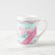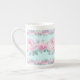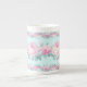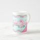 Personalised mug. Shabby chic style, floral gift for her. Pink roses on aqua blue background, romantic design. Add your name or any text.