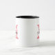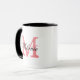 Personalised mug with elegant name monogram letter. Vintage monogrammed ringer coffeemug with stylish script letters. Cute birthday or party favour gift idea for men and women. Stylish 11oz cup with elegant coral pink and black colours. Also available as extra large oversized mug and big to go travel mug. Double sided design drinkware for office or home.