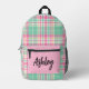 Lightweight and durable, our custom all-over-print Backpack is just what you need. The spacious interior is ideal for travel, school, gym, or any mobile storage need. Bring your stuff with you in style! Features Adjustable padded shoulder straps, two chambers on the inside for laptop storage, mesh side pockets and an identification label.
