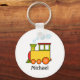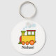 Cute multicolored train in yellow, red, green and orange. Puffs of blue fluffy steam are coming out of the chimney. Below is a template to add your name to personalise this keychain.