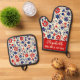A lovely personalised mum kitchen set featuring a patriotic floral pattern and the heartwarming phrase Home Cook Of The Brave. Customise with mum’s name for a thoughtful and practical gift she’ll use every day. Perfect for Mother’s Day gifts, kitchen decor, and patriotic home style, this Oven Mitt and Pot Holder set is great for moms who enjoy cooking, baking, and creating special family moments.