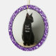 Add your photo to this personalised custom ornament, with a border of music notes and clefs on a purple background.