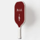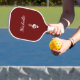 Personalised red pickle ball paddle, with a white treble clef and script typography design. With customisable lettering, you can add your own information. Great for adding a musical touch while enjoying your game.
