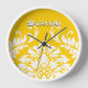 Vintage Modern Abstract Floral Mustard Yellow Black and White  Damask White Dots Custom Wall Clock - Your Name - or change to read whatever you like.   To change colour click customise then edit.  Use the last tool on the drop down - the little colour box - click it to choose from the colours shown or enter your RGB Hex Code for a one of a kind designer clock!