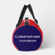 This duffel gear bag is a unique and fun gift for a sports player, team, or coach, or to bring your gear to the gym! 250th Anniversary 1776 to 2026, United States of America patriotic design on front, back, and one end. The other end has personalised name. A great milestone for the USA! Photo of American flags waving in the wind, and patriotic text make this a wonderful commemorative keepsake - a once in a lifetime event! Awesome gift for Independence Day, 4th of July, Memorial Day, Veterans Day picnic or BBQ. All Rights Reserved © 2025 Alan & Marcia Socolik.