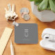 Custom name and initials elegant design on grey neutral background keychain, a chic and simple accessory ideal for any occasion. Whether it's a birthday present, a wedding favour or thank you gift, or just a treat yourself moment. This custom keychain can be personalised with name and initials for a unique touch. Designed to keep your keys safe in modern elegance, it makes for a trendy and thoughtful gift. Elevate your style with this elegant and practical accessory. A text template is included to personalise with your name and initial, monogram, or other desired text to create a truly unique and thoughtful gift for her.