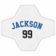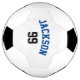 This soccer ball features a minimalistic design that contains a customisable name in bold dark blue and a number in bold black font. Personalise it with name and number in the colours of your favourite team and make it a perfect gift for a birthday or an upcoming holiday. Click on Personalise and then Customise further to change colours, font and more.