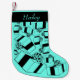 Personalised Name Aqua Black Gifts Pattern Small Christmas Stocking