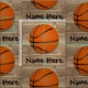 Stylish wood floor graphic background in light brown, with a dark orange textured look basketball, personalised with the kids, team or coach name and/or number.