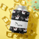 Modern and trendy Custom name sports black bowling balls and bowling pins pattern background and with white stripe personalised with just add your name gifts or monogram gifts or your initials for a unique gift. Sports gift ideas for men, women and boys and girls. Ideal for birthdays.