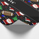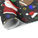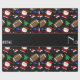 Modern and trendy sports football pattern with brown football, blue football helmet, snow, cute santa claus, santa hats, white red snowflakes, green red and yellow stars, green christmas trees with black background and with white black stripe personalised with just add your name gifts or monogram gifts or your initials for a unique gift. Sports gift ideas for men and boys and girls. Ideal for christmas presents.
