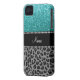 Personalised name blue glitter black leopard Case-Mate iPhone case
