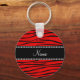 Personalised name bright red zebra stripes key ring