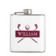 Personalised Name Burgundy Clubs And Ball Hip Flask