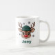 Personalised Name Christmas Reindeer Green Beanie Coffee Mug