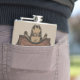 The flask itself is fine. It’s a cheap flask, obviously bought in bulk, however am prepared to overlook that. Given that it is a personalized item, I would have liked to have seen gift boxing instead of the generic packaging. Terrible printing, and/or quality. It’s a cheap, tacky vinyl. It is not cut straight and is also applied in a way that it is overhanging the bottom, causing the glue to catch on items and it will eventually roll and tear, damaging the wrap.