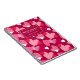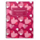 Personalised Name Cute Hearts Pattern Dark Magenta notebook. Design features an allover pattern of cute hearts in pink and magenta on a dark magenta background, with your name or choice of personalisation.