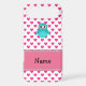 Turquoise/teal/aqua owl with pink hearts pattern and pink diamonds stripe (not real diamonds) personalised with your name gifts or monogram gifts or your initials