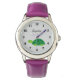 Personalised name cute turtle pink girls watch. Personalizable wrist watches for children. Girly Birthday or Christmas gift idea for girls. Wildlife animal vector design. Make your own for daughter, granddaughter, grandchild etc. Add your own custom name or monogram letters of child. Grey Polka dots background pattern. Script typography template. Sweet illustration drawing.