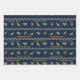 A set of three coordinated dinosaur gift wrap sheets in blue, yellow and green. Easily personalise the name and greeting with just a few clicks.