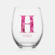 Personalised Name Elegant Pink Floral Monogram "H" Stemless Wine Glass