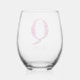 Personalised Name Elegant Pink Floral Monogram "Q" Stemless Wine Glass