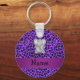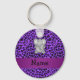 Personalised name elephant purple leopard print key ring