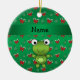 Personalised name frog green candy canes bows ceramic ornament
