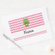 Personalised name frog white and pink chevrons rectangular sticker
