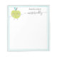 Modern From The Desk Of Notepad with Name. This design feature a handwritten script name and a cute smiling green apple on white background with aqua turquoise frame. You can customise this hand lettered script with your name. If you do not need personalise you can delete it. This notepad is a perfect gift idea for teachers and for her for any occasion. If you need help or matching item please contact to me. #3364