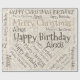 Cute typographic composition with following texts: Happy birthday, Merry Christmas, Happy Christmas Birthday. Name or text to personalise.