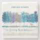 A beautiful and comforting inage of teal, blue and green trees with a modern font In Loving Remembrance across the bottom. Personalise it with the name of the person across the top of the trees. Serene and peaceful gift for someone as you offer condolences on their loss to remember their loved one after they have passed away.