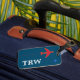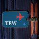 front side:A red plane on a blue (custom) background with the name-initials of the traveller