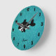 Personalised name killer whale turquoise glitter round clock